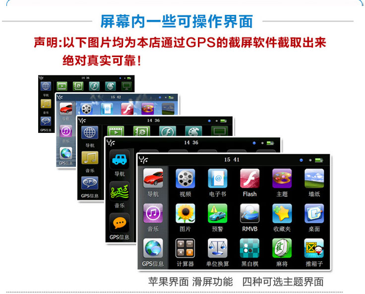 Apple interface,Slip screen function, Four optional theme interfaces