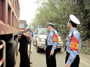 這時,一輛超載的泥頭車搖搖欲墜地開過來,被交警發(fā)現(xiàn)后攔停。經(jīng)檢查,泥頭車嚴(yán)重超載。根據(jù)《深圳經(jīng)濟特區(qū)道路交通安全違法行為處罰條例》規(guī)定:重、中型載貨汽車超過核定載質(zhì)量百分之一百以上的,處5千元罰款并處暫扣機動車駕駛證3個月,對車輛所有人處1萬元罰款,對車輛使用單位處2萬元罰款。這輛超載泥頭車將面臨3.5萬元的重罰。據(jù)統(tǒng)計,本報報道前天刊發(fā)后至記者昨天下午發(fā)稿時止,深圳市交警局特勤大隊的交警共對23輛泥頭車進行重罰,其中有10輛車每輛處罰金額將達3.5萬元。